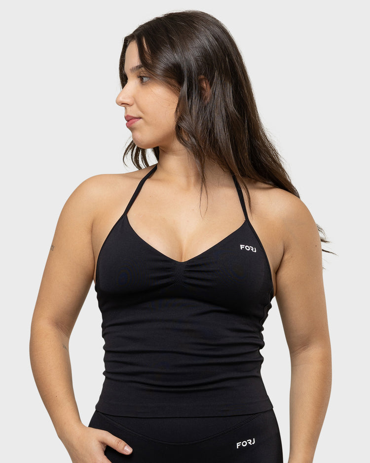 Sculpted support meets effortless style. The FORJ Longline Top features a contouring fit, halterneck design, and open-back freedom, made to empower every move.