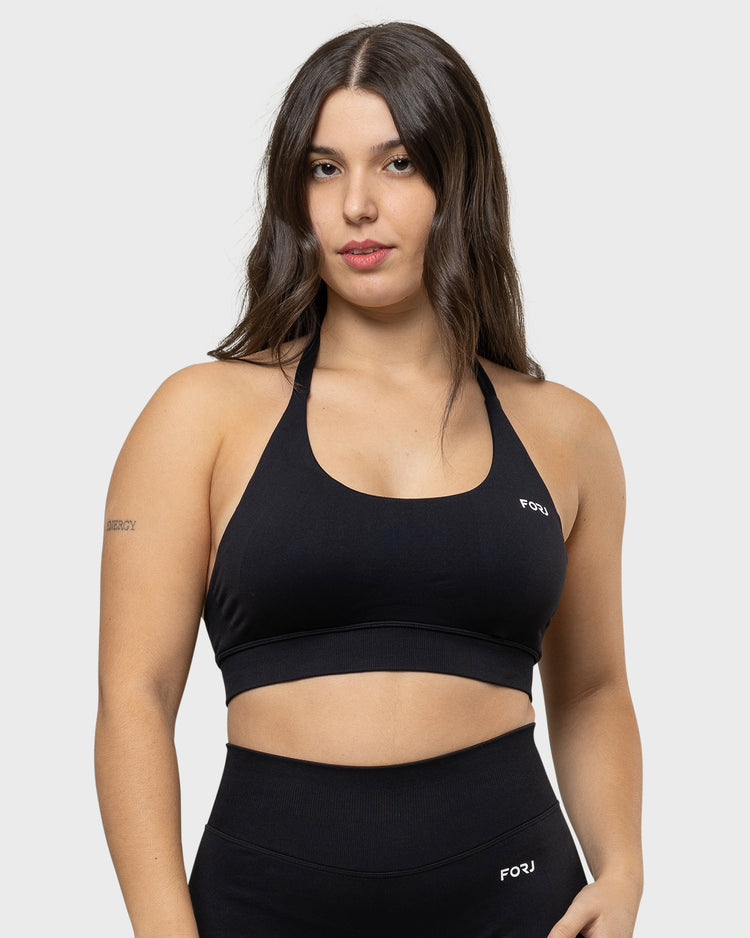 Minimal design. Maximum confidence. The FORJ Sculpt Sport Bra features a halterneck silhouette, open-back freedom, and sculpting support, made to move, shape, and perform.